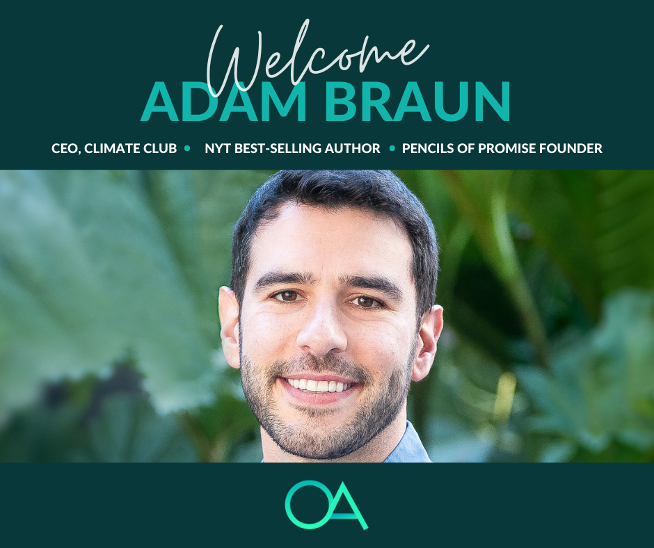 We’re thrilled to be collaborating with Adam Braun once again on events with his new focus on organizational climate change efforts!