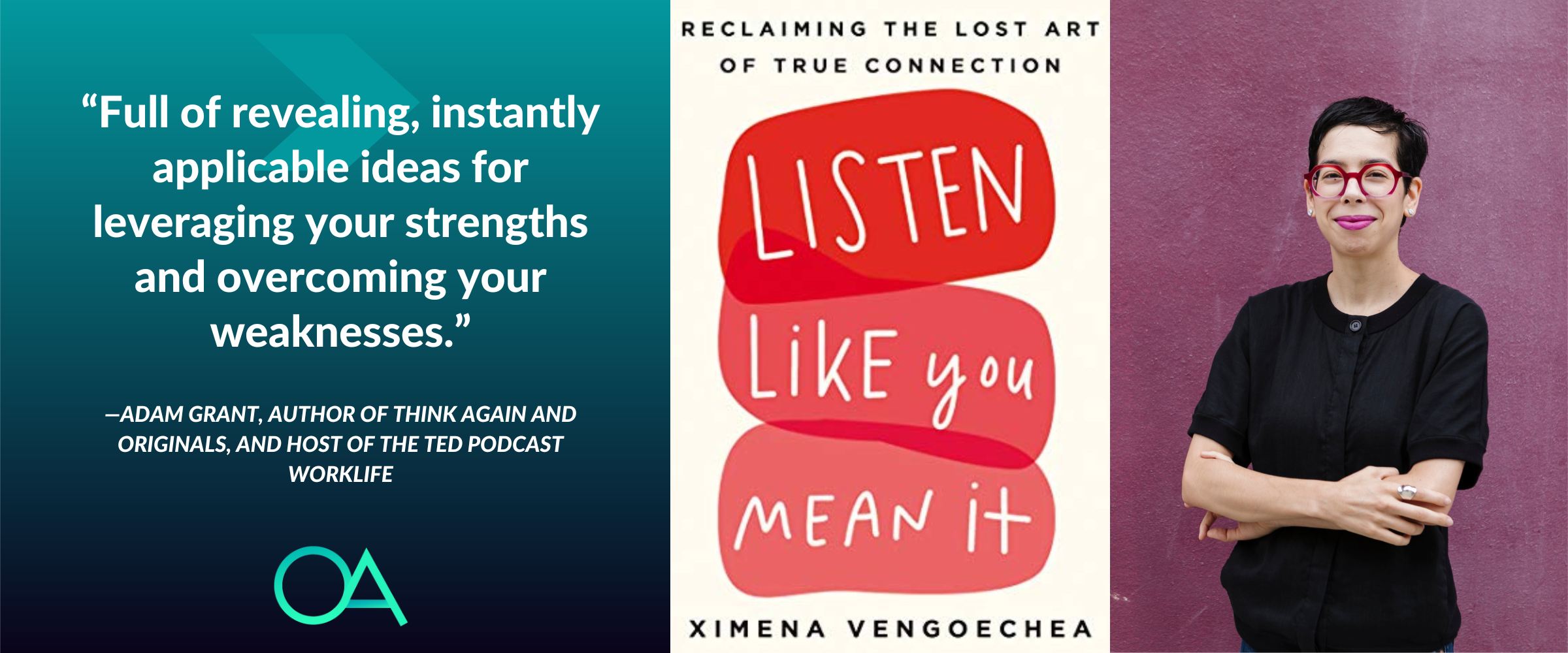 In Listen Like You Mean It, Ximena offers an essential listening guide for our times, using scripts, key questions, and more that will teach you how to earn rapport with strangers, ask questions that deepen conversations, pause at the right time to encourage vulnerability, and navigate tough conversations that don’t go as planned.